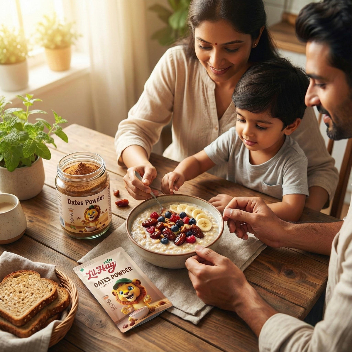 Pure sweetness from nature, made for little tummies. Rafrs Dates Powder is a 100% natural sweetener made from premium, carefully selected dates — gently cleaned, dried, and powdered without any chemicals or additives. Rich in natural iron, fibre, potassium, and antioxidants, our dates powder helps support energy, digestion, and overall growth. With its mild sweetness and smooth texture, it blends effortlessly into porridges, milk, cereals, pancakes, smoothies, and daily cooking. Give your child nature’s sweetest nutrition — made safe, simple, and truly natural..